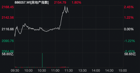 值得注意的是,临近午盘收盘,地产板块出现异动,Wind房地产指数直线拉升,一度涨近2.5%。