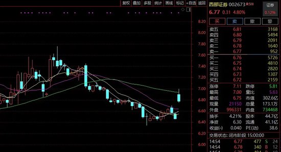 受此消息影响,西部证券股价一度冲击涨停。