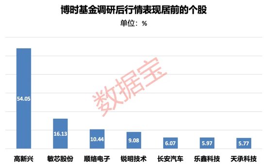 从行情表现来看,受大盘影响,6月以来获得基金公司调研的公司股价平均下跌2.79%。12家公司的股价涨超20%,高新兴、崇德科技和晶华微的股价6月以来涨幅居前,分别上涨59.32%、45.27%、42.08%。