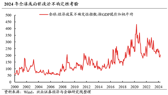 近年来,全球地缘、政治局势动荡,市场不确定性系统性抬升。近几年,随着俄乌冲突、巴以冲突爆发,全球地缘政治格局日益复杂化,地缘政治风险中枢上移。并且,后疫情时代下的全球经济增速放缓、债务激增、极右翼和极端民族主义抬头甚至上台等背景下,政治层面也面临不确定性考验。