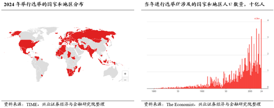 尤其是今年,更是全球“超级选举年”。据统计,2024年预计将有78个国家和地区举行总计83场选举,涉及人口数量达42亿人,占全球人口的60%。其中,40个国家和地区将举行以领导人选举为代表的政府选举,或以议会、国会选举为代表的立法机构选举,占世界总人口的41%,GDP规模的42%。