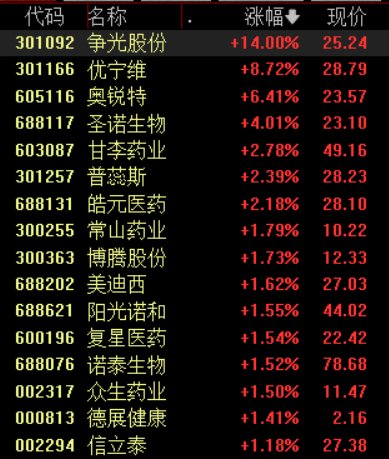 截至发稿,争光股份涨超10%,优宁维涨超8%,奥锐特、圣诺生物、甘李药业等跟涨。