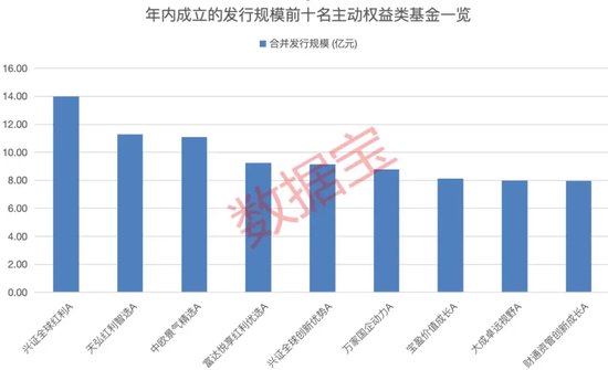 年内发行的主动权益基金中,发行规模居前的基金多数为红利型基金。兴证全球基金旗下的兴证全球红利A的合并基金规模最大,达13.98亿元。该基金成立于6月18日。