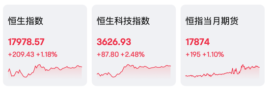 港股反弹。恒生指数涨1.18%至17978点;科技指数大涨2.48%至3626点。