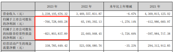 ST长康主要从事医药产品研发、生产和销售,2023年营业收入32.38亿元,同比下降6.67%;归母净利润-7.67亿元,同比下降1276.14%。