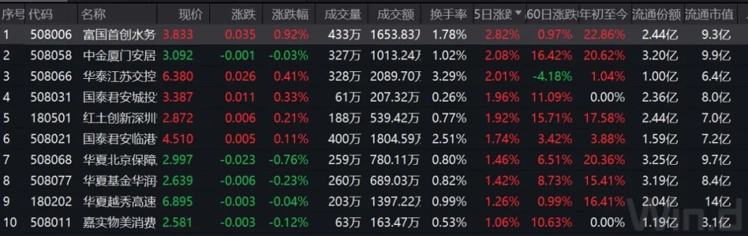 具体而言,本周38只已上市公募REITs中,有19只录得环比上涨。其中,周内涨幅第一的是富国首创水务REIT,周涨幅达2.82%,紧随其后的是中金厦门安居REIT、华泰江苏交控REIT,周涨幅均超2%。整体看,本周涨幅居前的公募REITs多为保障性租赁住房、交通基础设施类。