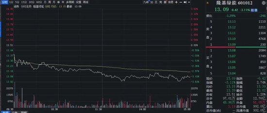 光伏板块走低,隆基绿能市值跌破千亿,阿特斯、东方日升、晶澳科技、通威股份、TCL中环等下挫。