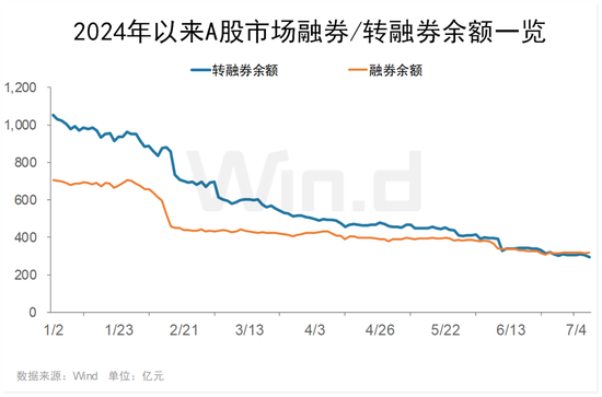 据Wind数据显示,今年以来,A股市场融券、转融券余额持续缩水,融券收紧效果明显。截至7月9日,A股市场融券余额为318.38亿元,较上年末的715.97亿元下滑55.53%;转融券余额为296.04亿元,较上年末的1104.17亿元下滑73.19%。