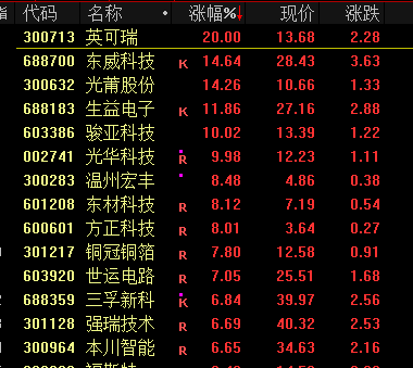 PCB概念股持续走强,世运电路涨超7%创历史新高,英可瑞“20CM”涨停,方正科技、骏亚科技、天承科技、博敏电子等涨超5%。消息面上,PCB企业普遍迎来业绩大增的半年度“成绩单”。