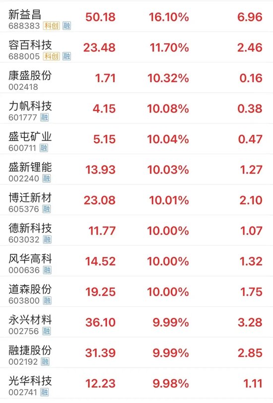 今日,锂电、光伏、储能等新能源赛道股集体走强。截至收盘,新益昌、容百科技涨超10%,康盛股份、力帆科技、盛屯矿业、融捷股份、盛新锂能、博迁新材、永兴材料等多股涨停。