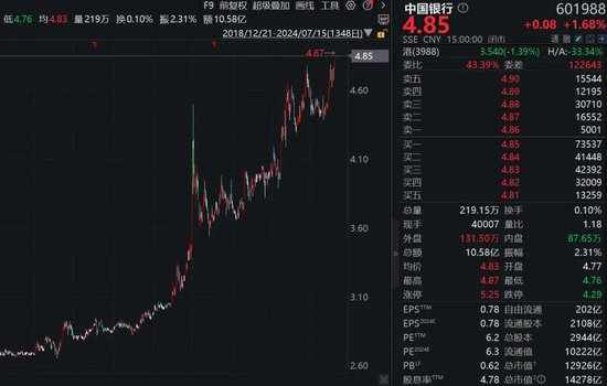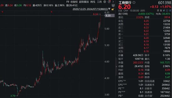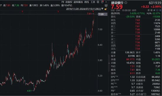 建设银行放量大涨近3%,成功突破2018年1月的历史最高点(复权,下同),工商银行同样突破2018年的历史高点,农业银行、中国银行则连续不断地刷新历史纪录。渝农商行、北京银行等也纷纷创出多年来新高。