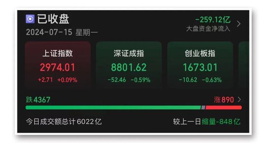 7月15日,市场全天窄幅震荡,三大指数涨跌不一。沪深两市今日成交额6021亿元,较上个交易日缩量848亿元。板块方面,猪肉、影视、银行、网约车等板块涨幅居前。