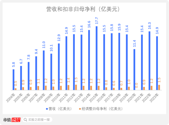 2023年,公司营收为14.9亿美元,虽然同比下降8.5%,但扣非归母净利反而同比增长23.3%,为1.5亿美元。