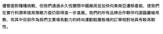 如今公司将工厂迁移到东南亚,在印度尼西亚、孟加拉等国家和地区扩大产能,重新获得了低成本劳动力。
