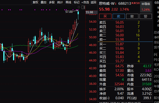 思特威-W今天上午盘中一度大涨逾5%。