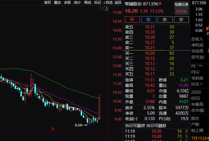 常辅股份今天上午盘中也一度大涨逾17%。