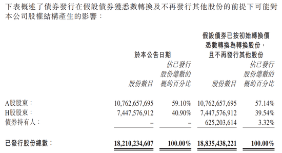 该可转换债券初始转换价为每股H股43.71港元,较7月15日收盘价36.05港元溢价约21.25%,可悉数转换约6.25亿股,占公司扩大后H股的7.74%及已发行股本的3.32%。
