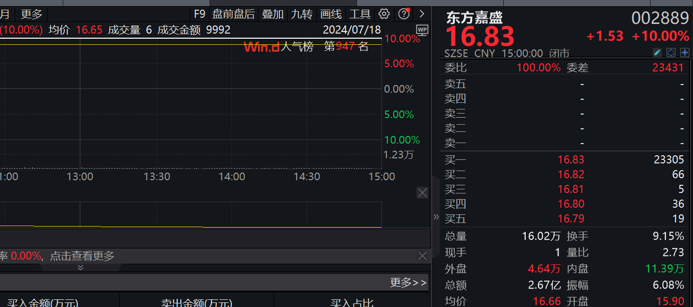 7月18日,A股市场低开高走,三大指数早盘下跌后均探底回升。上证指数收盘上涨14.28点,涨幅为0.48%,报收2977.13点;深证成指收盘上涨44.19点,涨幅为0.5%,报收8879.33点;创业板指收盘上涨21.26点,涨幅为1.25%,报收1717.71点。