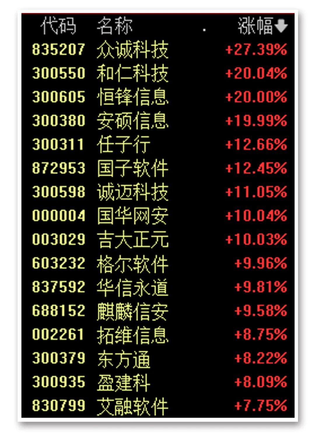 今天上午,软件概念股大涨,软件开发、华为欧拉、数据安全等板块涨幅居前。