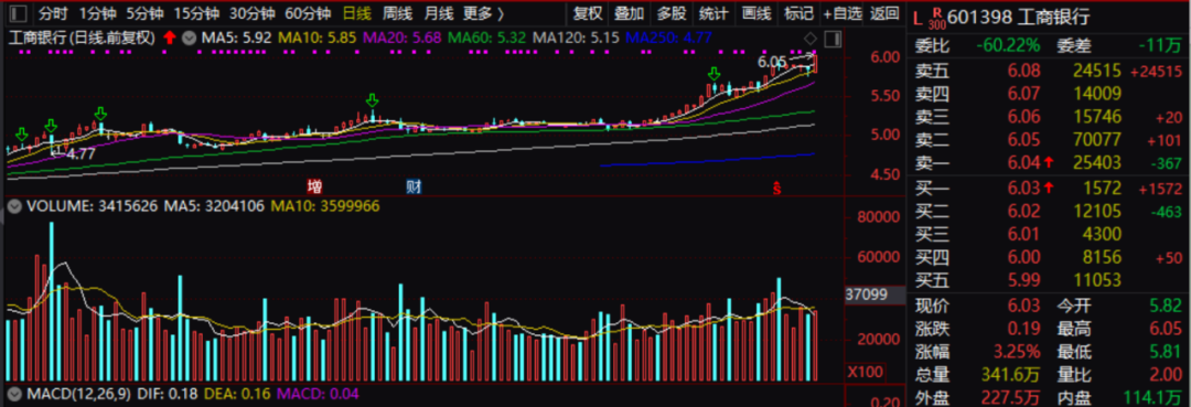红利指数最近虽然调整较多,但作为红利板块的银行股,以及部分大股票的调整幅度并不大,今天更是有一些股票创出历史新高。其中,工商银行大涨超3%,创历史新高;中国银行亦创历史新高,农行也到历史新高。