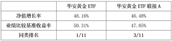 (数据来源:基金业绩、业绩比较基准收益率来自基金2024年二季报,排名来自银河证券,截至2024/6/30。华安黄金ETF、华安黄金ETF联接A同类基金分别指黄金ETF基金、黄金ETF联接基金(A类))