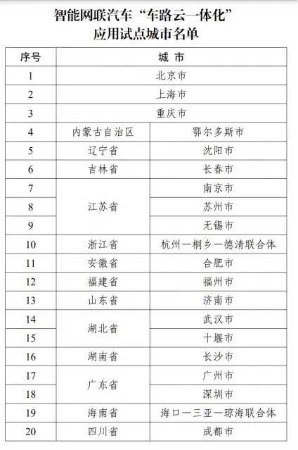 近期,有关智能网联汽车的政策密集推出,推动智能联网汽车发展进入快车道。7月3日,工信部联合公安部、自然资源部、住房城乡建设部、交通运输部发布通知,公布了20个智能网联汽车“车路云一体化”应用试点城市名单,名单涵盖北京、上海、广州、深圳等国内主要城市。