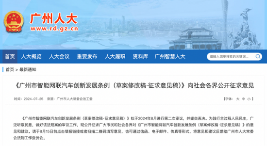 近期,广州人大官网发布了《广州市智能网联汽车创新发展条例(草案修改稿·征求意见稿)》(以下简称“意见稿”),向社会各界公开征求意见。意见稿明确提出,支持智能网联汽车在高速公路、机场、港口、车站等干线和交通枢纽开展创新应用,支持用于城市公交、出租车等城市出行服务,除危险货物运输外的物流配送、快递配送等应用场景。