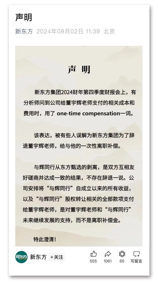 董宇辉的“出走”余波未平。新东方微信公众号午间发布澄清声明。