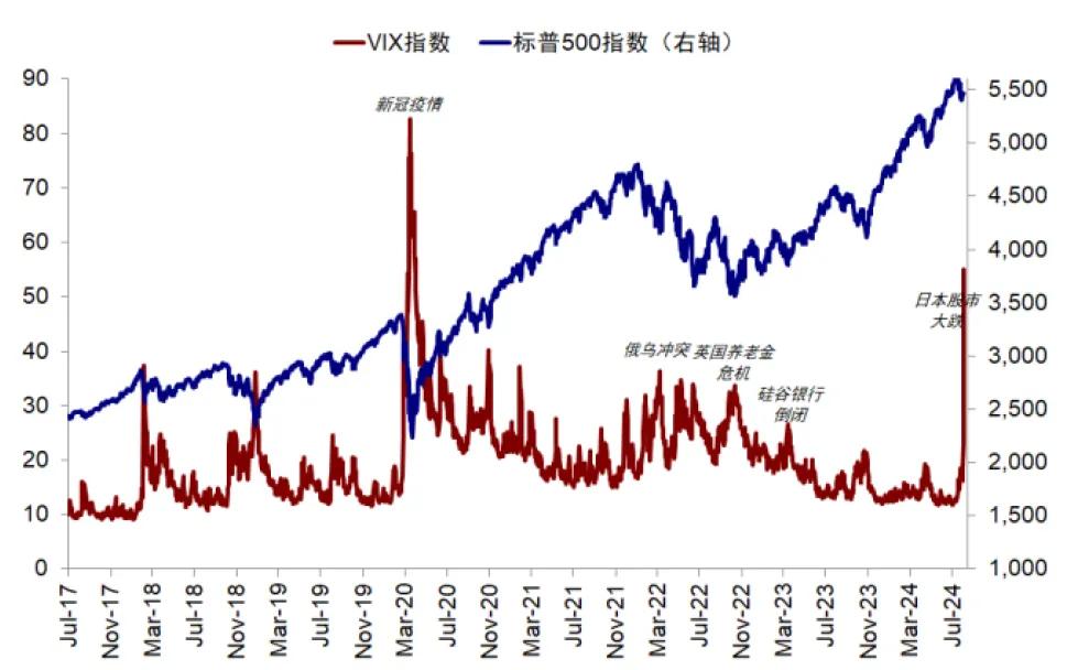 如果说上周五的交易还停留在市场是否过度担忧衰退的基本面层面,周一日股和套息交易的波动,使得市场波动进入了局部流动性冲击的新阶段。这种阶段,抛开基本面问题不谈,市场下跌的本身就会成为一个问题。如此大幅的下跌,应该大概率会触发一些平仓甚至爆仓,背后是否有较大的杠杆,甚至传导到其他金融机构的衍生品或风险敞口,进而触发进一步平仓,我们目前还不得而知,但这些都会加大短期波动。