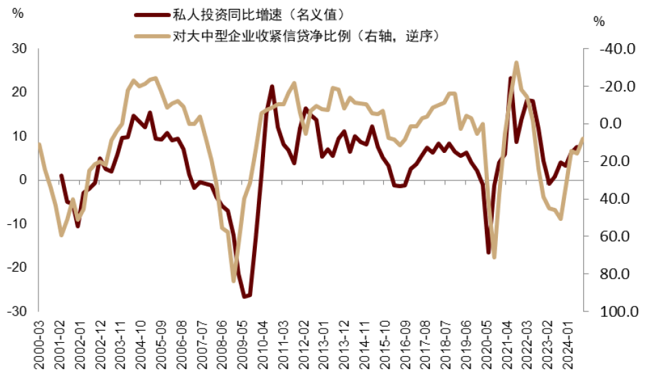 从近期来看,美国消费、投资均呈现偏强态势。二季度耐用品消费环比增速几乎全线恢复,地产链相关的家具、家具陈设表现尤其亮眼。新一轮投资周期也有开启迹象,GDP框架下的私人投资在设备投资的推动下上行,特别是工业设备投资的回升或说明制造业生产周期开启。从企业层面看,标普500销售环比第二个季度上行,引领资本开支上升。金融条件的放宽促进消费与投资韧性。自去年四季度至今,银行逐步放宽工商、消费、住宅等贷款标准,刺激消费与投资需求回升(图表21,图表22),从8月最新公布的数据来看,各类贷款需求呈现同步快速回升的态势(图表23)。