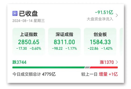 截至收盘,沪指跌0.6%,深证成指跌1.17%,创业板指跌1.42%。