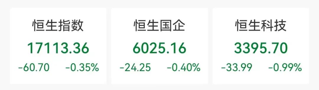 8月14日,港股三大指数高开低走,最终集体收跌。截至收盘,恒生指数跌0.35%,报17113.36点;恒生科技指数跌0.99%,报3395.7点;恒生国企指数跌0.4%,报6025.16点。