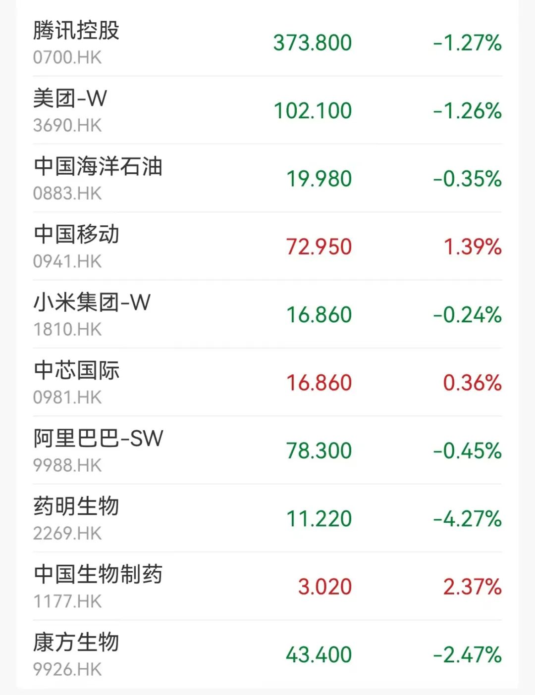 另一方面,电讯板块反弹,中国电信涨近2%;猪价开启快速上行,猪肉概念股逆市走强,万洲国际后涨超8%。