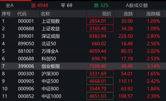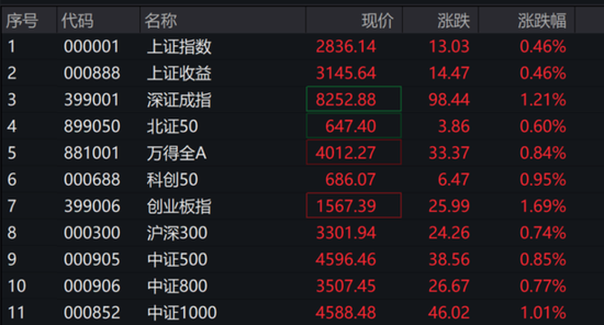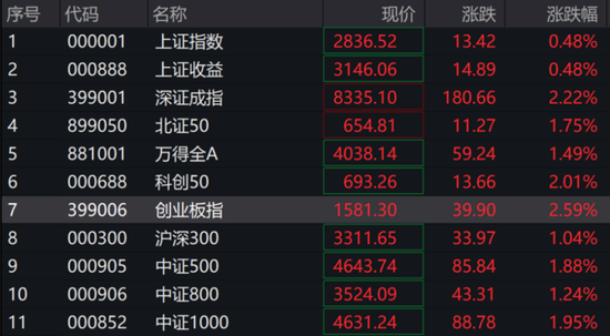 深成指、创业板指双双涨超2%,沪指涨0.48%。