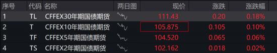 国债期货开盘,30年期主力合约涨0.19%,10年期主力合约涨0.08%,5年期主力合约涨0.03%,2年期主力合约涨0.00%。