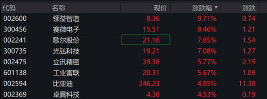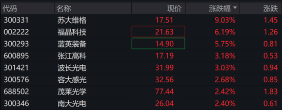 消费电子板块持续拉升,折叠屏、AI眼镜、智能穿戴等方向领涨,智动力、奋达科技、科森科技、深科技、维信诺、凯盛科技、日久光电等十余股涨停,英唐智控、博士眼镜、捷邦科技、精研科技等多股涨超10%。