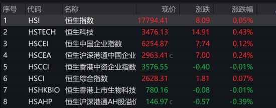 恒指高开0.05%,报17794.41点;恒生科技指数涨0.43%。理想汽车、小鹏汽车涨超4%。