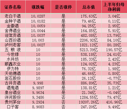 9月26日,白酒板块迎来批量涨停潮,老白干酒、迎驾贡酒、泸州老窖等在内的17只白酒股涨停,板块涨停个股占比高达85%,贵州茅台上涨9.29%,市值回升至1.92万亿元。