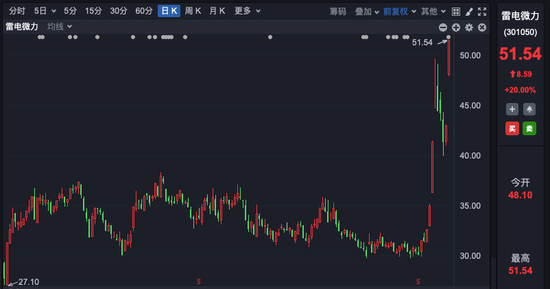 受业绩大增提振,雷电微力大幅高开后快速20%涨停,股价创1年半来新高(复权),成交较昨日5.48亿元激增至15.9亿元,创3年多来新高。