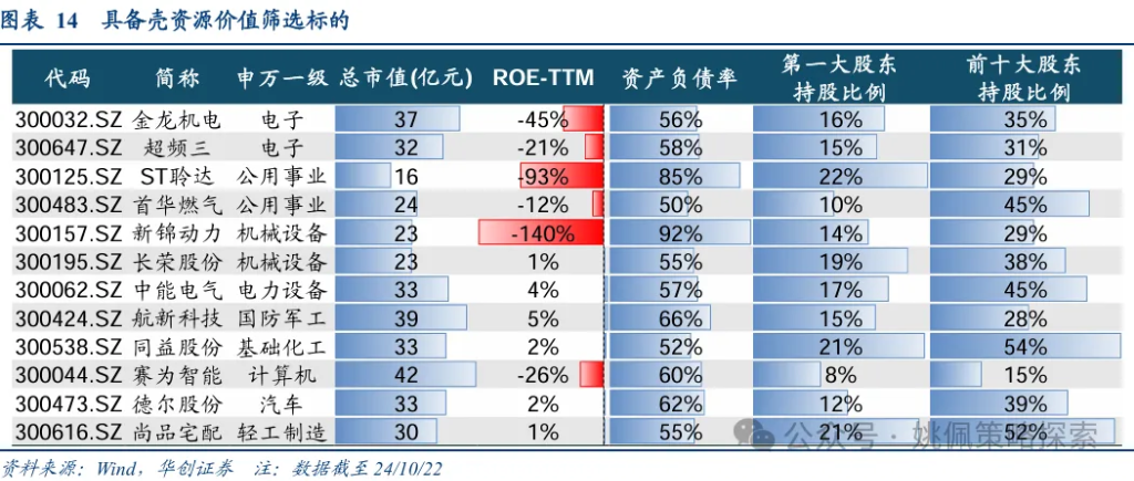 ①并购重组是当前A股重要主题。华创策略前期报告《并购重组三剑客:资产注入、壳、产业整合》指出,随着4/12新国九条、6/19科创板八条、9/24并购六条的发布,当前政策端多措并举激发并购重组市场活力,A股并购重组正进入“活跃期”。我们认为,当下重视并购重组变得愈发重要,主要基于两点:一是,并购重组能够明显解决IPO“堰塞湖”的问题。近期由于一级市场IPO节奏相对缓慢,使得大量科技创新型企业亟需融资支持,在此背景下,并购重组已成为融通一二级市场的重要抓手。二是,并购重组是上市公司提质增效的重要途径。过去几年,由于国内企业扎堆IPO,导致大量优质资产出现了分拆上市的情况,对上市公司整体质量造成一定影响;当前政策端大力支持并购重组背景下,上市公司可通过并购正在排队IPO的优质企业,实现提质增效。基于以上背景,我们从同一实控人下资产注入预期、具备壳资源价值、产业链内部并购重组预期三个视角出发,对全A上市公司进行筛选。(详细筛选标准见前期报告《并购重组三剑客:资产注入、壳、产业整合》)