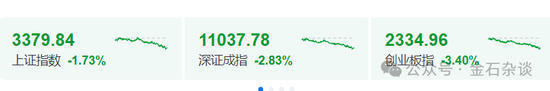 11月14日,A股大幅调整,沪指跌1.73%,3400点失守,深证成指跌2.8%,创业板指跌3.4%,恒指再度跌近2%,恒生科技指数跌超3%。