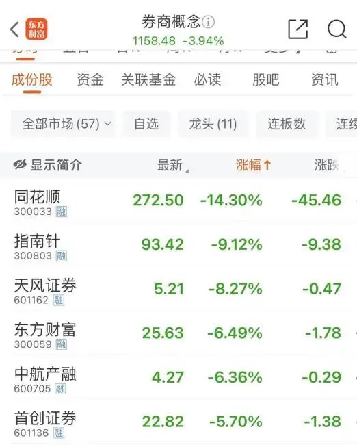 今日午后,金融科技股跳水下挫,财富趋势、赢时胜、指南针等纷纷大跌,同花顺跌近15%。