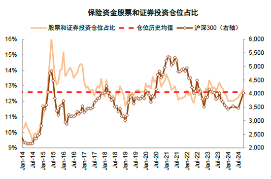 图表5:保险资金股票和证券投资仓位上升至12.8%