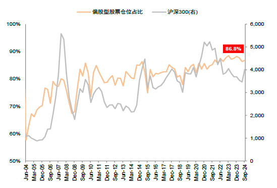 图表4:主动偏股型基金股票仓位上升至86.8%