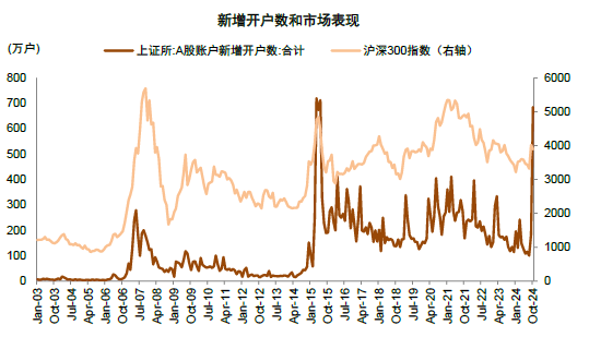 图表7:10月上交所A股新增开户数反弹至685万户,为历史单月第三高的水平