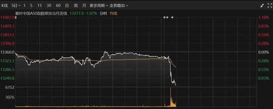 富时中国A50指数期货盘中跳水,一度跌超1%。