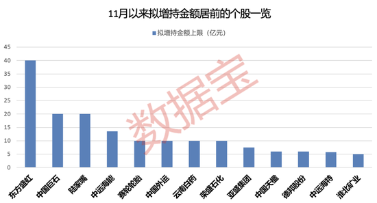 东方盛虹的拟增持金额上限最高。公司11月13日晚间公告,公司控股股东盛虹科技及其一致行动人盛虹石化、盛虹苏州拟增持公司股份,本次合计增持金额不低于20亿元,不超过40亿元。公告后次日,东方盛虹实现今年以来首次涨停。