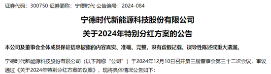 10日晚间,宁德时代披露了年内第二个分红方案,公司拟以2024年前三季度合并报表中归母净利润的15%,即54亿元作为分配总额进行分红,以现有总股本44.03亿股剔除回购专用证券账户中已回购股份1599.15万股后的股本43.87亿股为基数,向全体股东每10股派发现金红利12.3元。本次分红不送红股,不以公积金转增股本。