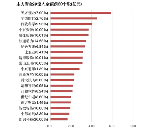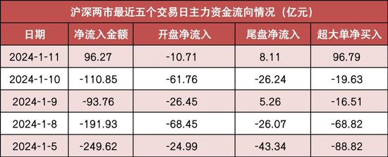 今日沪深两市主力资金开盘净流出10.71亿元,尾盘净流入8.11亿元,两市全天主力资金净流入96.27亿元。