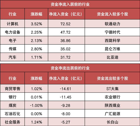 【11日资金路线图】两市主力资金净流入96亿元 计算机等行业实现净流入